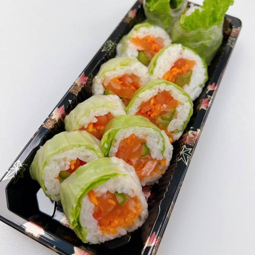 Comme un rouleau de printemps, ce Cristal est un enroulé de saumon dans une feuille de riz puis de salade, avec du riz vinaigré, de la tomate, de la carotte, du concombre et de la menthe.