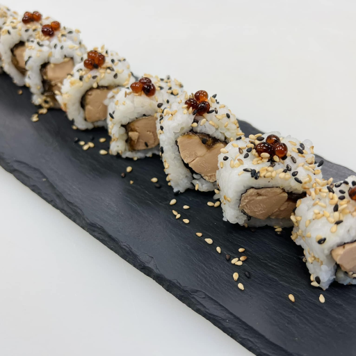 Faites une pause-plaisir, et goûtez au foie gras couché sur un confit d’oignon dans un california surplombé de perles de vinaigre balsamique… Vous verrez, vous y reviendrez !